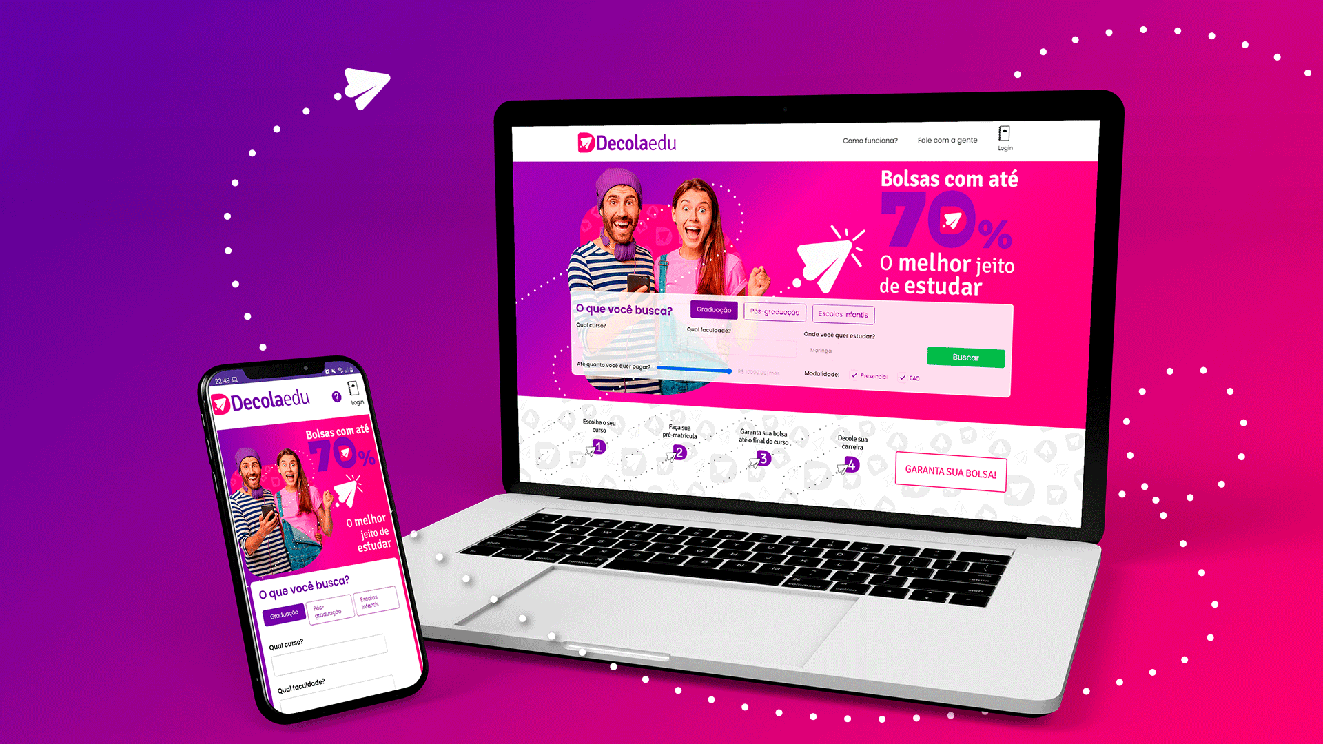 The company: In portuguese, Decola means the act of a plane to take off. And “edu” refers to education, as the company helps students to get discounts and scholarships in private brazilian universities.